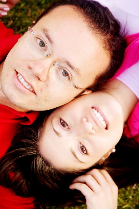 happy couple portrait on the floor outdoors