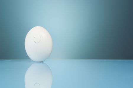 Happy egg on blue... that fell off my table and broke seconds after this photo :(.