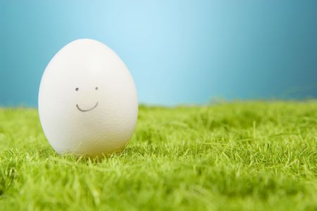 Happy egg on fake green grass.