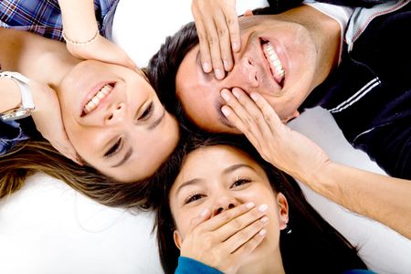 Happy friends having fun isolated on white