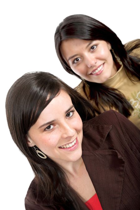 happy friends over white - girls smiling