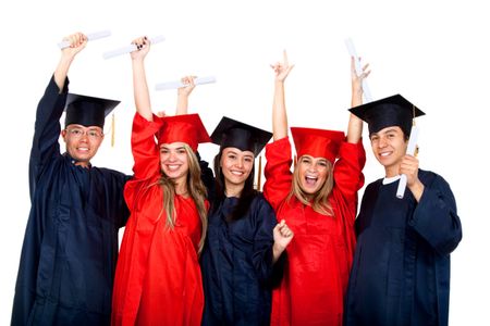 happy graduation students full of success isolated on white