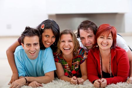 Happy group of friends lying on the floor and smiling