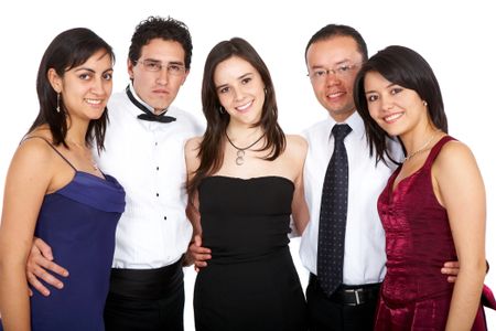 happy group of friends ready to party isolated over a white background