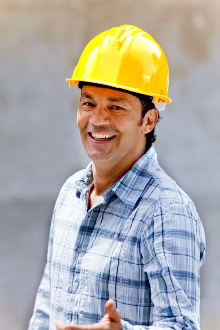 Happy male construction worker wearing a helmet and smiling