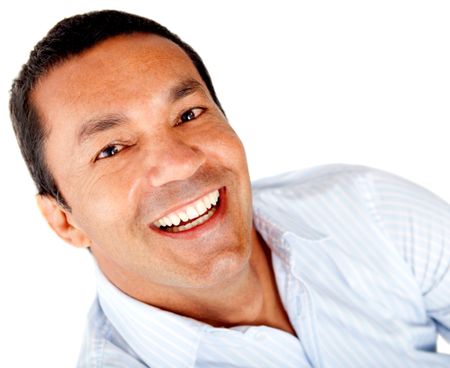 Happy man portrait smiling - isolated over a white background
