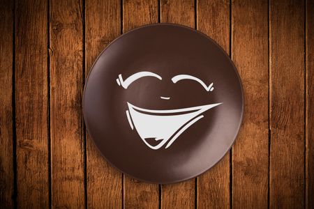 Happy smile cartoon face on colorful dish plate and grungy background