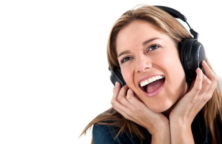 Happy woman with headphones isolated over a white background