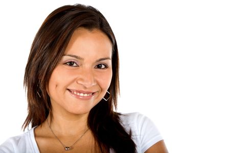 Happy woman portrait smiling isolated over a white background