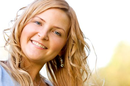 happy woman portrait smiling outdoors in a park