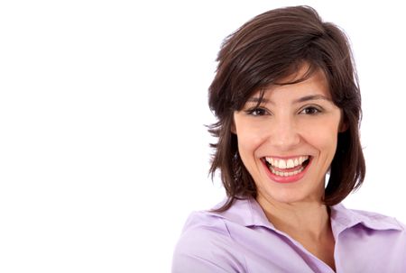 happy woman smiling isolated over a white background