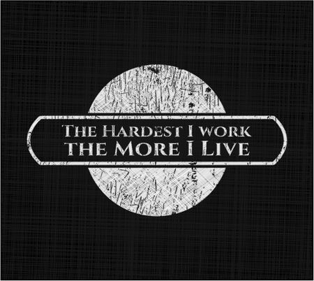 The Hardest I work the More I Live chalkboard emblem written on a blackboard