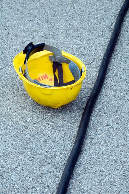 Hardhat by cable on the ground