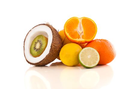 Healthy colorful tropical fresh fruits on white background