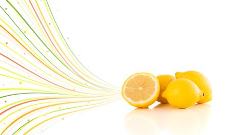 Healthy tropical fruits with colorful abstract lines on white background