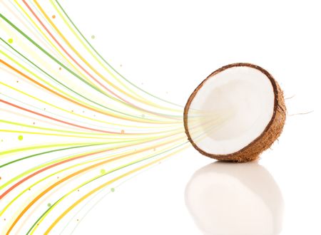 Healthy tropical fruits with colorful abstract lines on white background