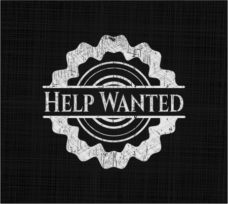 Help Wanted chalkboard emblem written on a blackboard