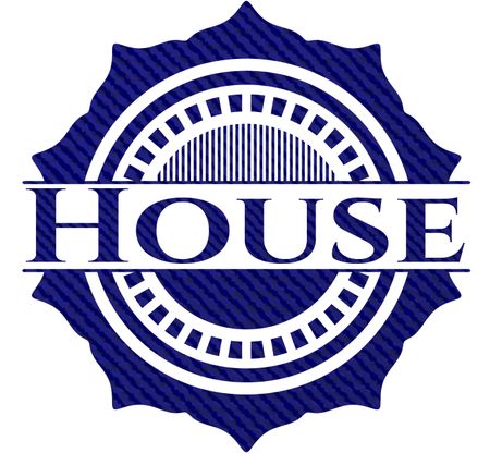 House badge with denim background
