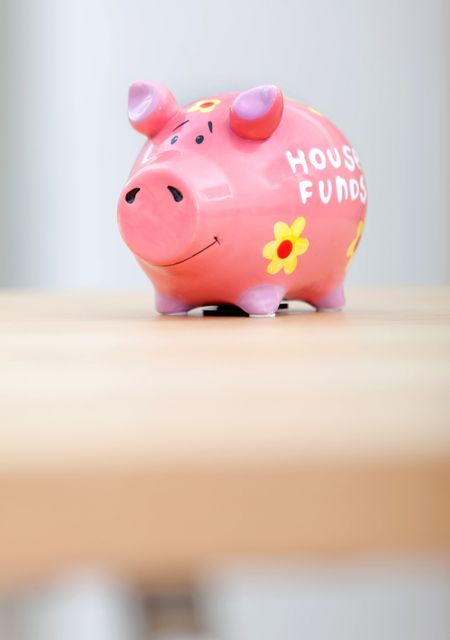 House savings in a cute pink piggybank