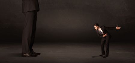 Huge man with small businessman standing at front concept on background