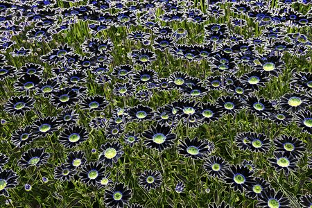Illustration of many daisies with glowing edges in summer garden, for decoration and background