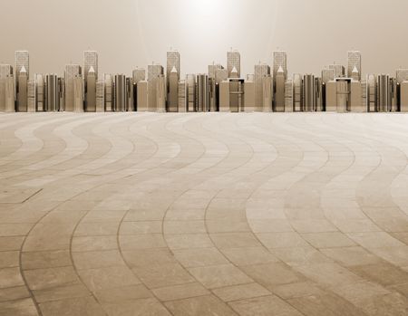 illustration in sepia colors of an urban landscape