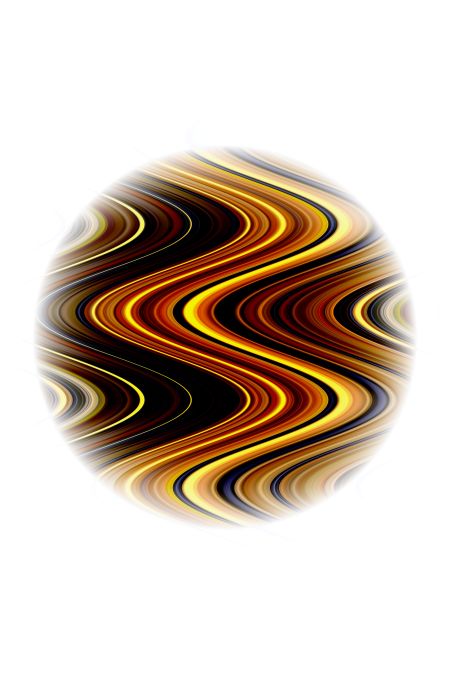 Imaginary abstract of globe with contiguous waves, like a planet with a swirling atmosphere on fire, on a white background, for astronomical or speculative themes