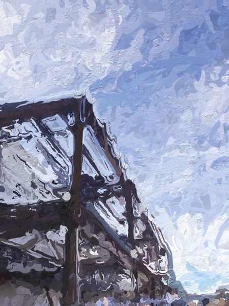 Industrial impressionism: Simulated oil painting of office building under construction (conversion of digital photo)