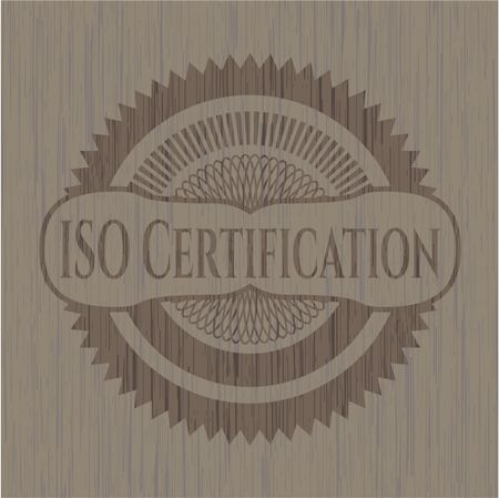 ISO Certification wooden emblem. Vintage.