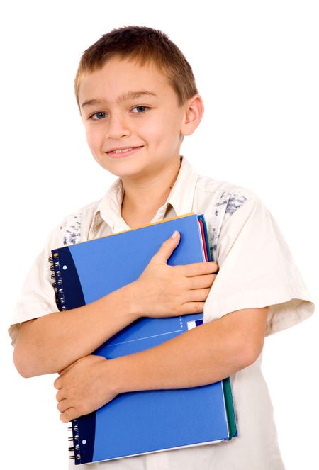 kid holding a notebook – isolated over a white background