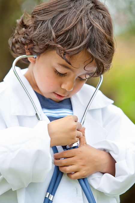 Kid listening to his own heart with a stethoscope