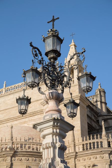 Lamppost and Cathedral Facade; Seville; Spain