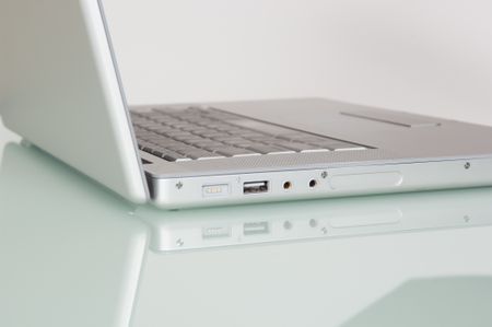 Laptop on a glass surface.
