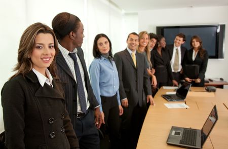 Large business group in a conference smiling