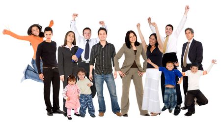 large group of happy people isolated over white