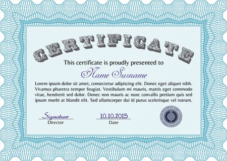 Light blue Certificate. Complex design. Detailed. Printer friendly.