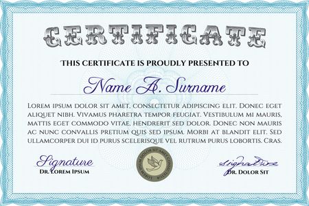 Light blue Certificate. Complex design. Printer friendly. Detailed.