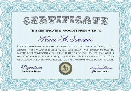 Light blue Certificate template or diploma template. Superior design. Complex background. Vector pattern that is used in currency and diplomas.