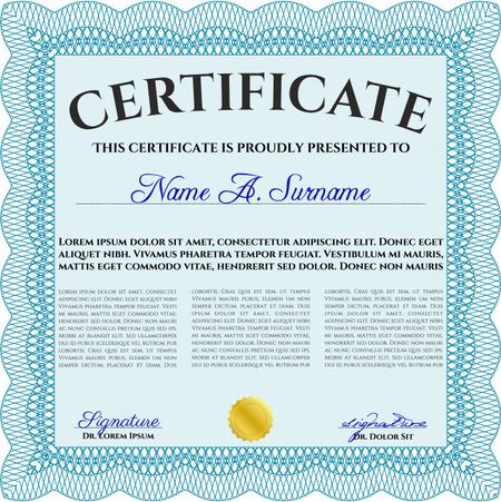 Light blue Certificatem diplmoa or award template. With guilloche pattern. Design template. Money style design.