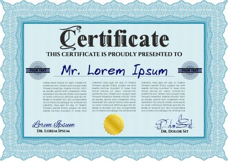 Light blue Diploma template. With complex background. Vector illustration. Lovely design.