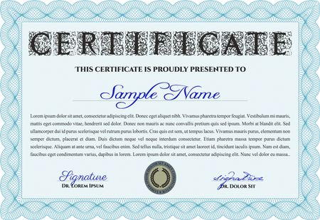 Light blue Sample Certificate. With linear background. Frame certificate template Vector. Modern design.