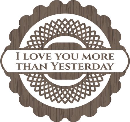 I love you more than Yesterday badge with wooden background