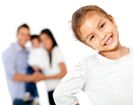 Lovely girl with her family - isolated over a white background