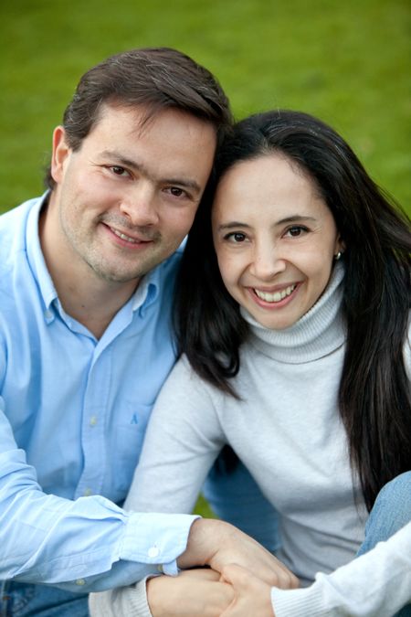 loving couple portrait looking happy and smiling outdoors