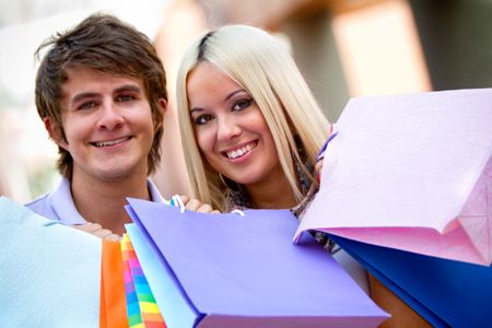 Loving couple at the shopping center with bags