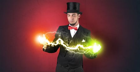 Magician sparkling super power between his two hands