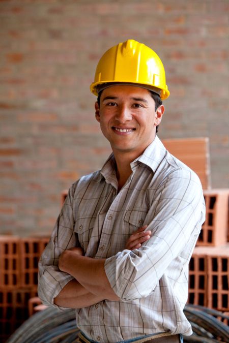 Male construction worker at a building site smiling