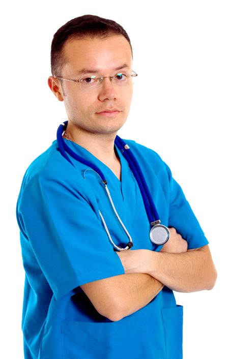 male nurse portrait over a white background