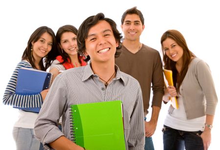 Male student standing in front of a group of friends - isolated