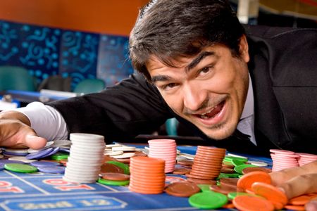 Man in a casino winning on the roulette